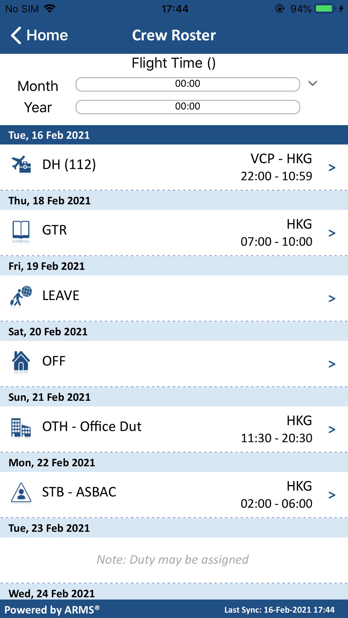 LAI is currently providing Crew Roster, Document Validity,